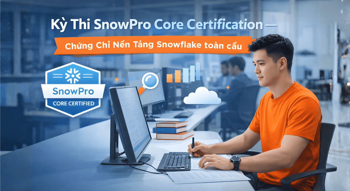 Trong bối cảnh dữ liệu và điện toán đám mây đang trở thành nền tảng của mọi doanh nghiệp hiện đại, SnowPro Core Certification là chứng chỉ quan trọng giúp chuẩn hóa năng lực làm việc với Snowflake – nền tảng dữ liệu đám mây hàng đầu thế giới. Đây là bước khởi đầu lý tưởng cho những ai theo đuổi sự nghiệp trong lĩnh vực Data & Analytics.